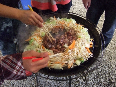 お肉は毎回焼肉屋さんから買ってるのでとても美味しいですが今回は魚介類にも力を入れて,サザエやエビ,マグロのカマなどかなり豪華で、臭いに連れられて周りの人達が集まってくるほどでした!