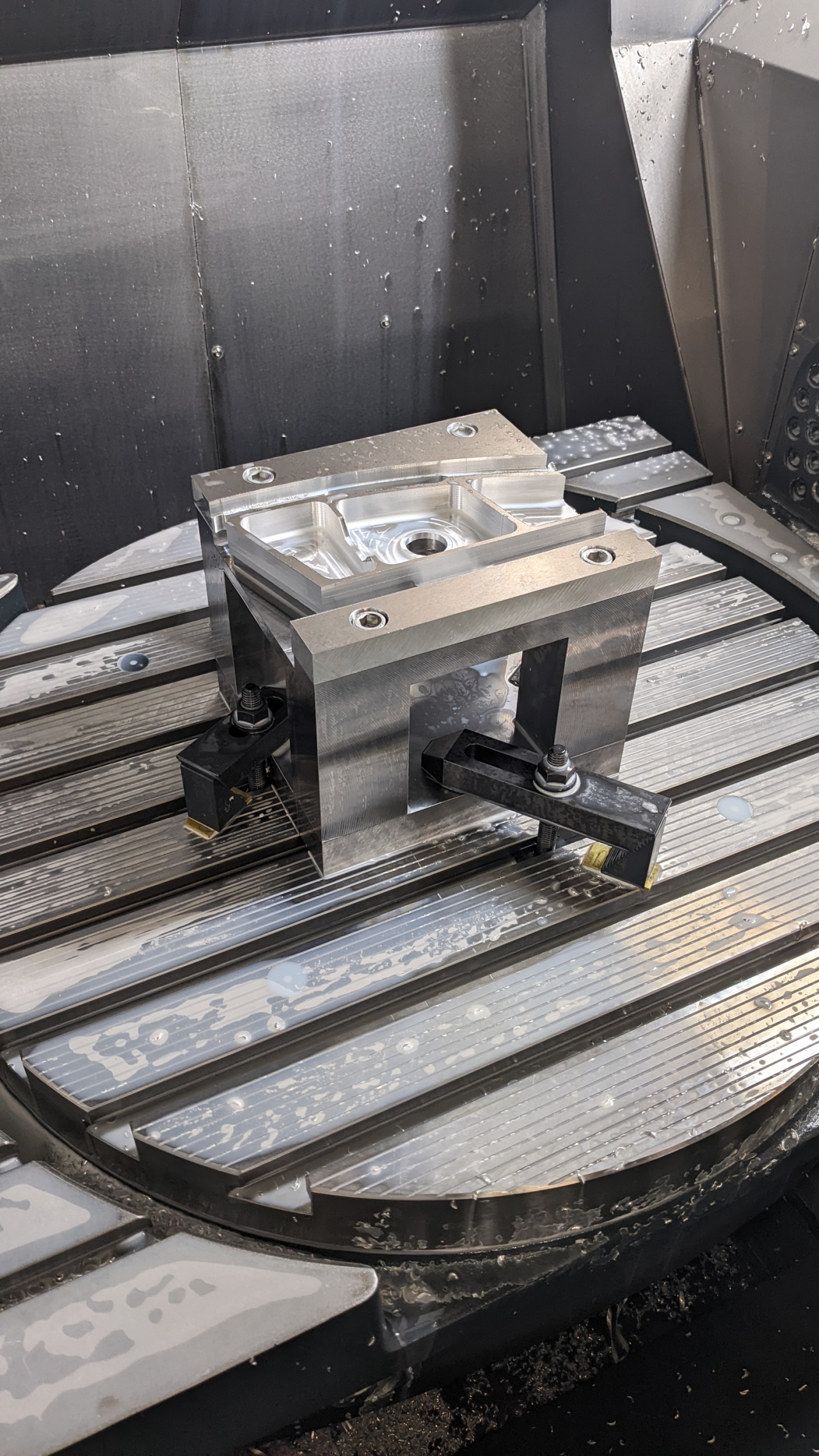 内容としては、2日間かけてCAMによる工具の軌跡の作り方や加工シミュレーションの見方を教わり、3日目に5軸加工機で実際に加工する様子を見学しました。