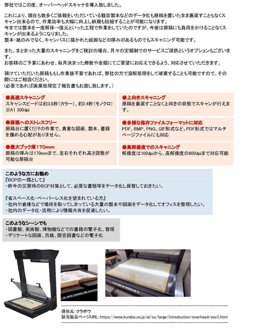 製本が溜まってしまってお困りの方、大切な図面をデータで残しておきたい方など、この機会に是非とも一度お試し下さい。