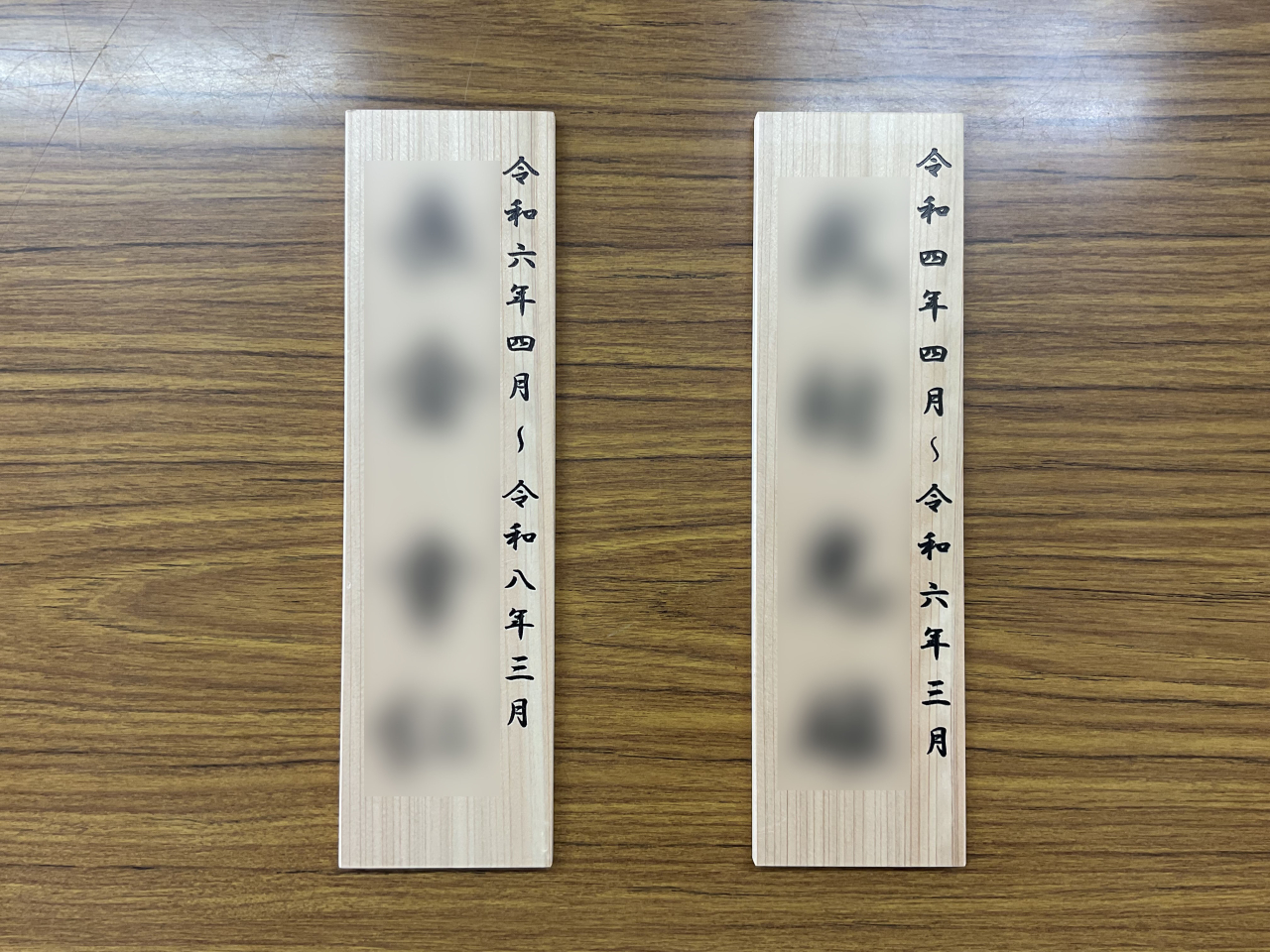 こちらは厚さ約1cmの木の板に箔押し機で文字を入力し、仕上げたものになります。